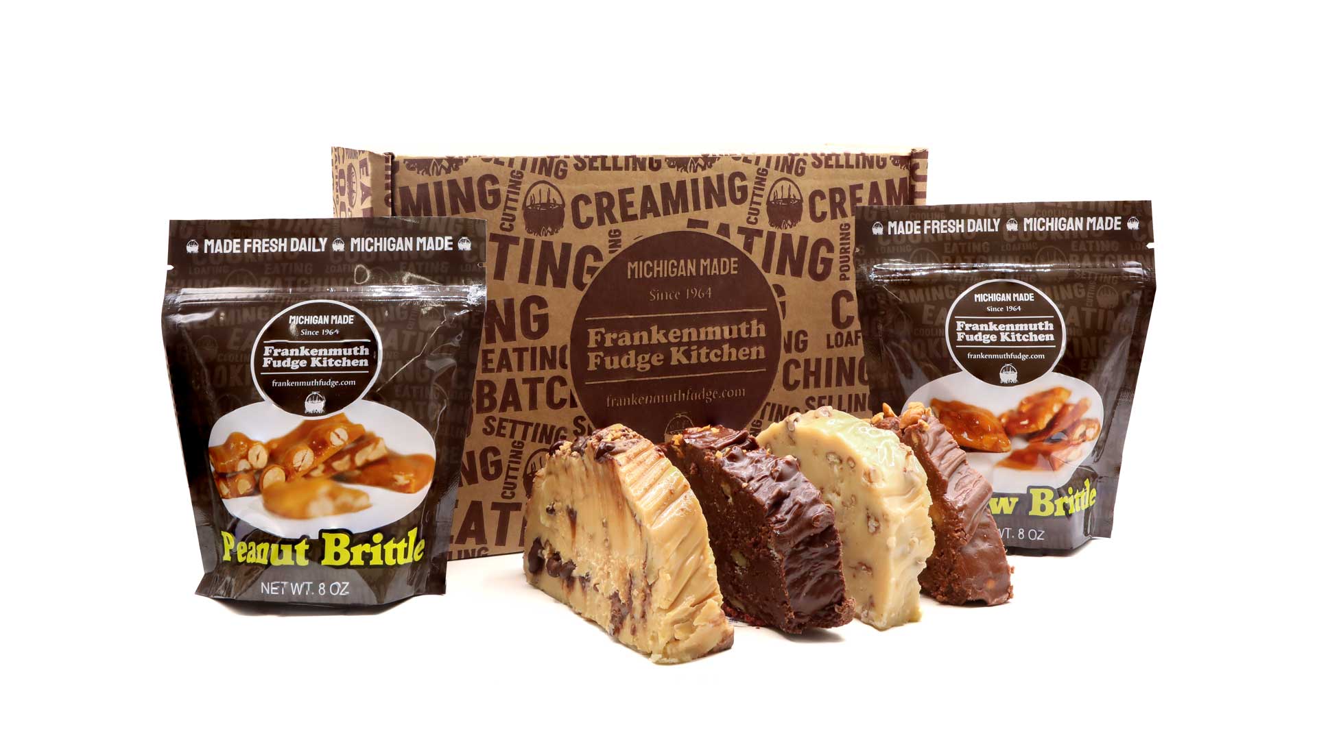 Indulge in a slice of tradition with our Fudge & Brittle Gift Box, featuring artisanal treats from our celebrated Frankenmuth Fudge Kitchen. Each confection is lovingly crafted using cherished recipes from the 1960s, ensuring a taste experience steeped in history and quality.