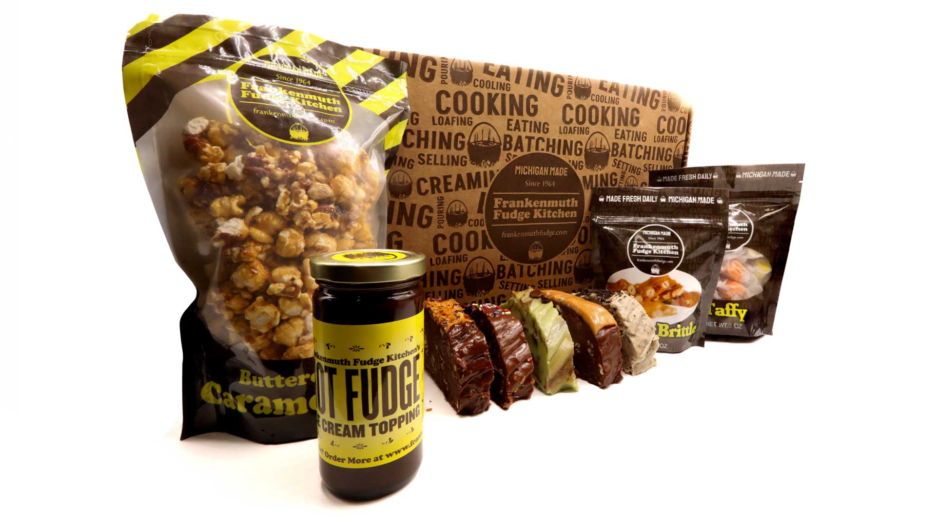 Discover the perfect blend of nostalgia and indulgence with our Ultimate Gift Box, featuring an array of handcrafted delights from our renowned Frankenmuth Fudge Kitchen. Each product is created using time-honored recipes that date back to the 1960s, ensuring an authentic and delectable experience.